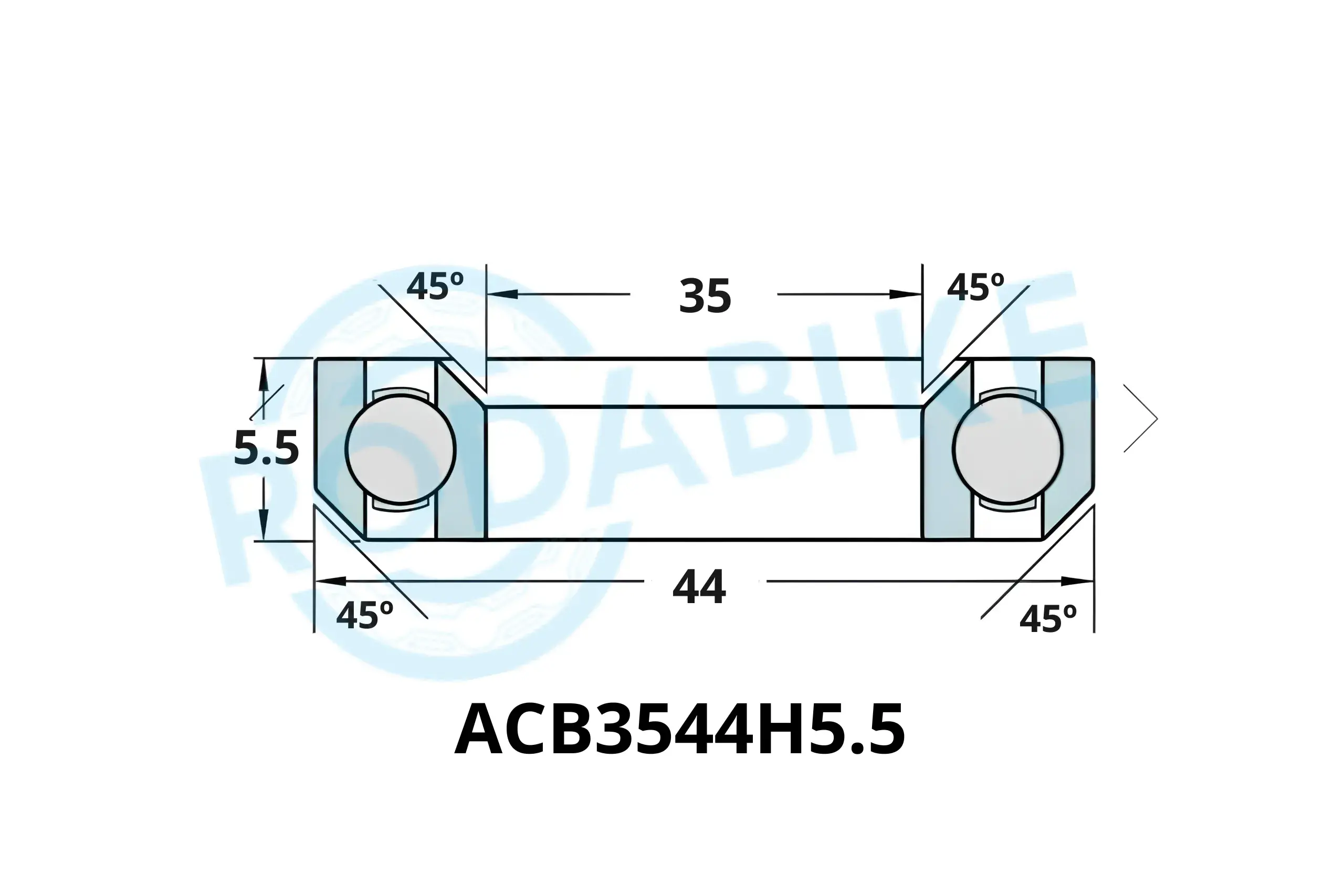 El rodamiento ACB3544H5,5 está fabricado en acero Chrome Steel con chaflán 36°/45°, diseñado para direcciones integradas de 1-1/4". Utilizado en bicicletas Canyon (Endurace CF SLX, Ultimate CF SLX y Aeroad CF SLX).
