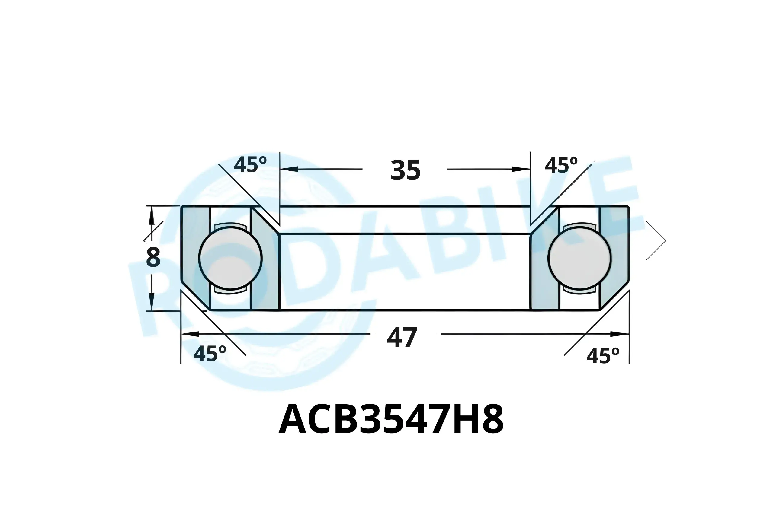 El rodamiento ACB3547H8 en acero Chrome Steel con chaflán 45°/45° proporciona precisión y estabilidad para direcciones de 1-1/4". Utilizado en el cojinete inferior de la Pinarello Dogma 60.1.