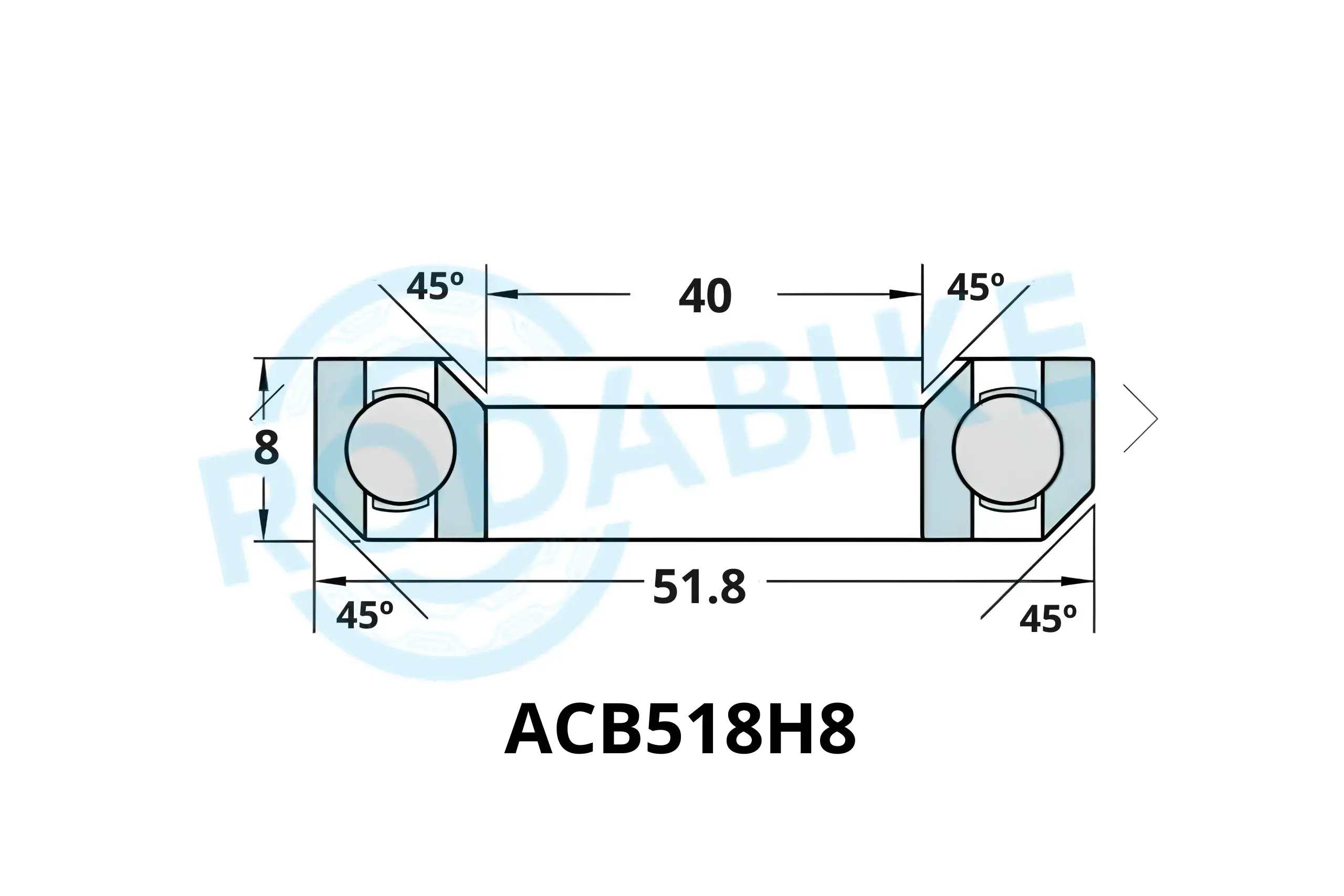 El rodamiento ACB518H8 fabricado en acero Chrome Steel con ángulo 45°/45° ofrece rotación fluida y precisión constante en sistemas de dirección de 1-1/8".